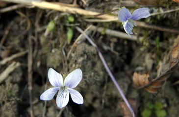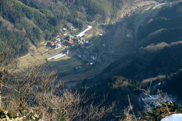 | 登山口付近の集落を俯瞰する。 | 下山中にスミレを発見した。 この時期に咲いているのを見るのは初めてだ。 これも地球温暖化の影響かな。 |