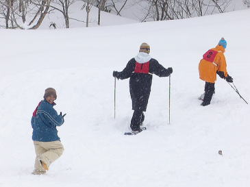 | 私のスノーシューを見て、ぜひ履いてみたいと言うのでレンタルスノーシューでみんなで雪原散歩を楽しむことにした。 満足そうな彼らの顔を見て、私もとても幸せな気持ちになった一日だった。 |