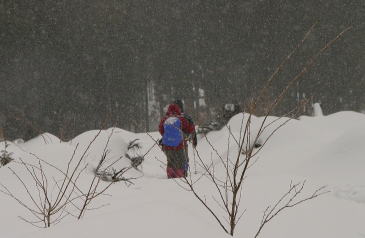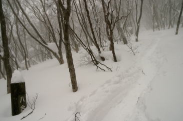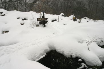 | B・Cコースの登山口 | みぞれが激しく降り出してきた。 | ||||