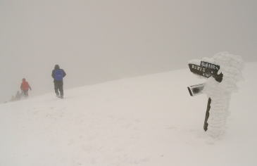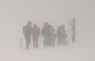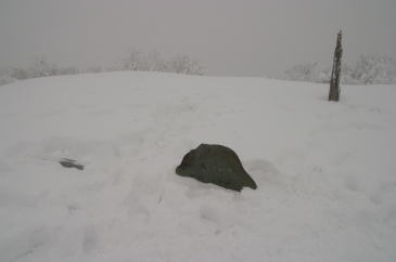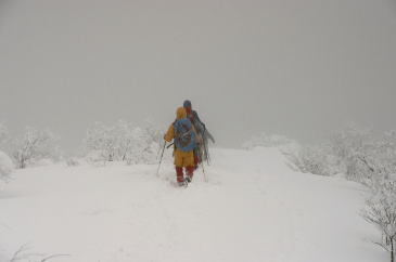 | 稜線に出ると団体さんが次から次に下りて来られた。 | 激しい風が吹き荒れて最悪の天気になってしまった。 | ||||