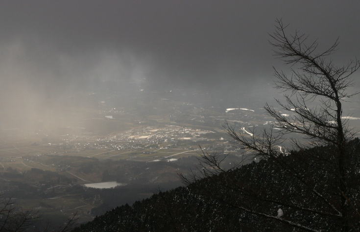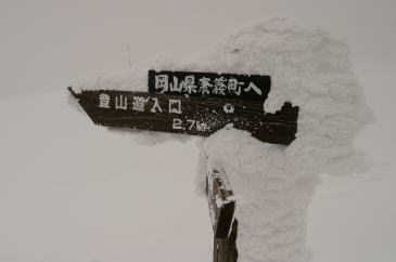 | 天気が良ければ久しぶりに大山を歩きたいと思っていたのに、今日は青空は望めそうになかった。 こんな日は自宅から近い那岐三座に足が向いてしまう。 今日は何事だろう。B、Cコースの第一・第二駐車場は満車状態のうえ、路肩にも6〜7台の車があった。 積雪期の那岐山でこれだけの車を見るのは初めてだ。仕方なく路肩に車を駐車し歩き始めた。 しっかりしたトレースがありスノーシューは必要ないと思われたが、下山時にけっこう楽しめるので背負って行くことにした。 |