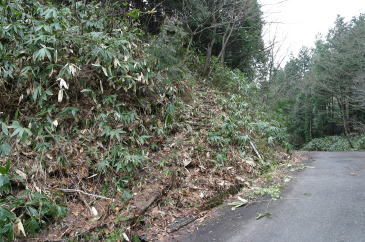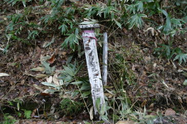| 仏ヶ仙登山口 | 側溝に横たわっていた木標は初めての登山者のために立てかけておいた。 | |||||