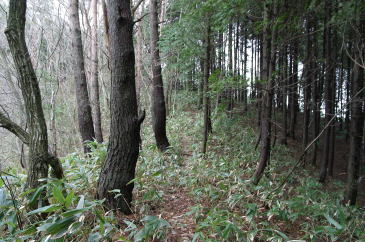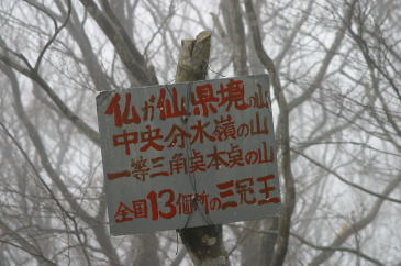 | 仏ヶ仙の立て札はそっと木標に乗せておいたが・・・ | 意外と踏み跡はしっかりついていた。しばらくきつい直登が続くが30分とかからず山頂にたどり着いてしまい、少々拍子抜けしてしまった。 |