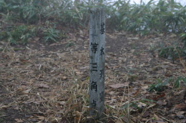 | 山頂に掲示された三冠王の標識 | 山頂の一等三角点 | |||||