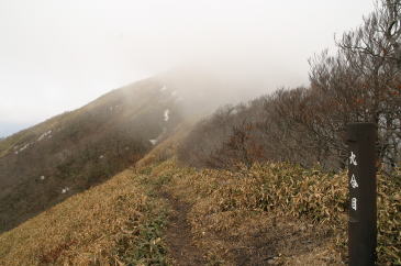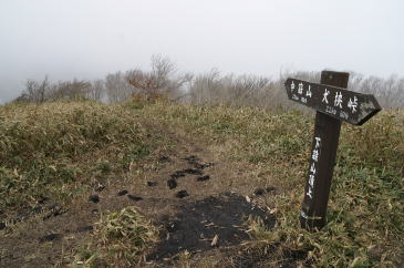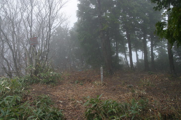 | ガイドブックによると見晴らしの良い日には日本海や三平山、蒜山、そして船上山に至るまで 壮大な景色を楽しむことができるとあるが、残念ながらこの日は全く展望が利かなかった。 往復しても1時間とかからないので、次は晴れた日に大山や蒜山登山の帰りにでもまた立ち寄って絶景を楽しんでみたい。 この山を歩いた後帰路につくつもりでいたが、少々物足りなさを感じてしまい下蒜山に車を走らせた。 |