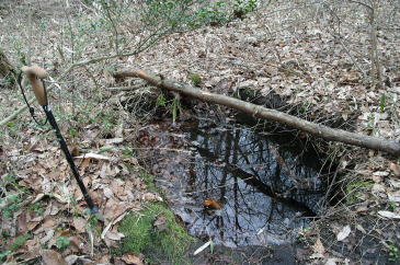 | 窪みから水が湧き出しているのを発見したが、 果たして飲めるのかどうかわからない。 |