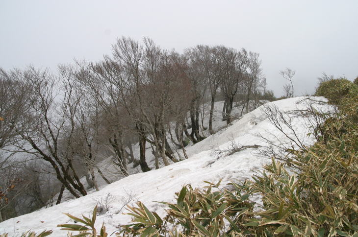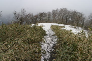 | 下蒜山山頂 | 中蒜山方面への縦走路にはまだ少し雪が残っていた。 | |||||