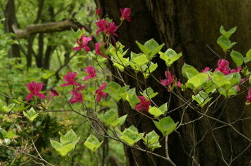 | 白い花はオランダミミナグサでしょうか。 | 色鮮やかなミツバツツジ | |||||||