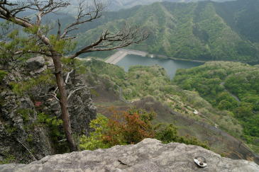 | 景色はすばらしいが、下を見ると目がくらみそうだ。私のとても苦手な場所だ。 長居は無用、そそくさと登山道に戻ることにした。 |