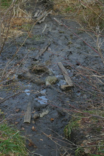 | 道はぬかるみ低木の枝が以前にも増して張り出して、非常に歩きにくくなっている。 | ||||||||