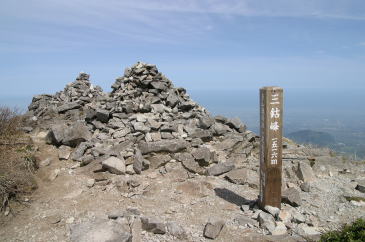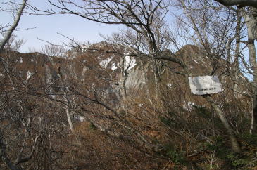 | 野田ヶ山頂上 (7:55) 樹間から三鈷峰が見える。 |