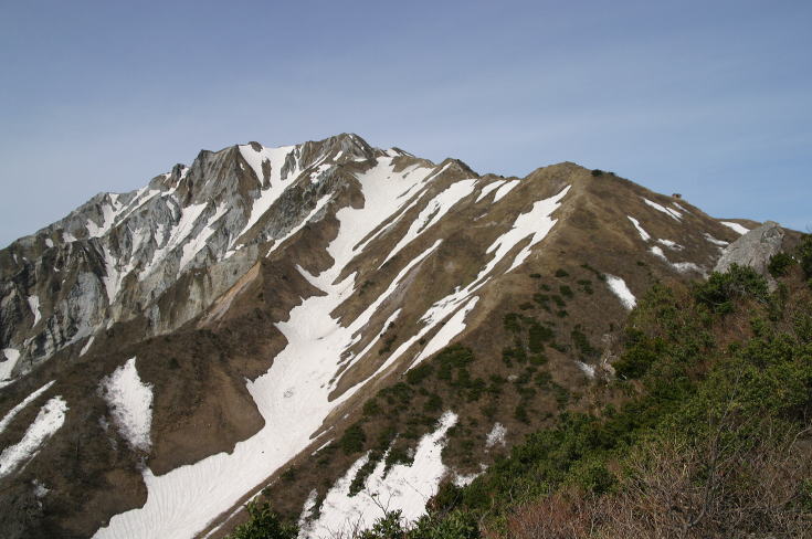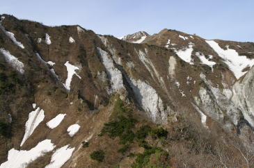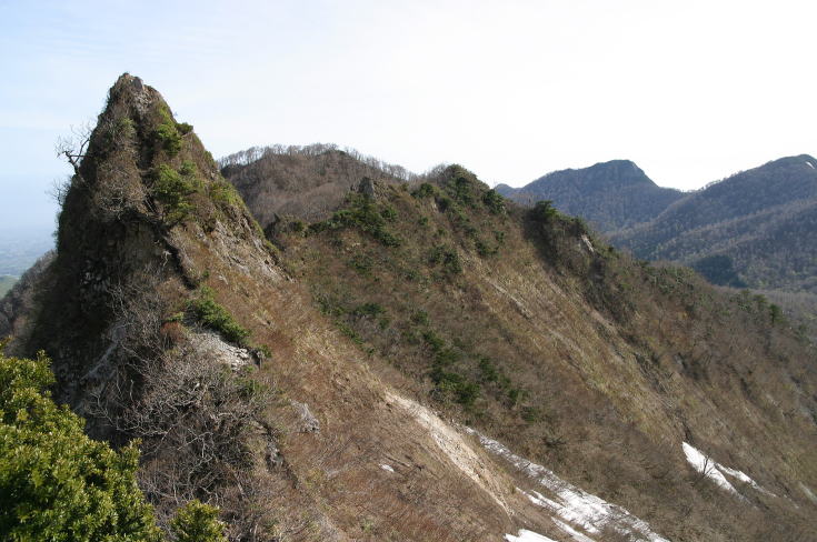 | 象ヶ鼻からの展望 (9:40) 天気は良いが稜線上には猛烈な風が吹き荒れていた。 |