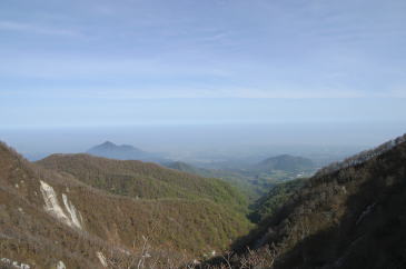 | 遥か向こうに歩き始めた船上山が望めた。 そして勝田ヶ山、甲ヶ山、矢筈ヶ山、野田ヶ山、振子山と山並みは続く。 この山並みを歩いて来たんだなぁ。 |