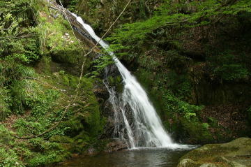 ヤブの中だとなかなか地形を読み取るのは難しいものだ。 途中何度か次の赤いテープを見つけられずに立ち往生してしまった。 それだけに目の前に不動滝を見つけたときは、うれしさが込みあげてきた。 古屋不動滝から下湯原温泉までの下りのルートは自転車で一気に走り抜けることができる。 下山後いつもの下湯原温泉にのんびりつかりながら、「今日もなかなかいい山歩きができたなぁ。」とひとり言。 さて、次はどの山を歩こうかな。 |