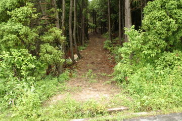 | この道を右に行くとパラグライダーの発進基地が現れる。 頂上へ向かうにはここを左折する。 |