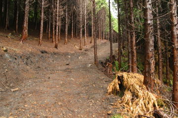 しばらく行くとキャタピラの跡が残る未舗装の林道が現れた。
