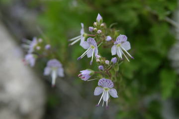 | 山小屋の近くでダイセンクワガタを見つけた。 背丈が低いうえ小さな花なので見過ごしてしまいそうだ。 |