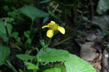 | 今回のお目当てである奥の院滝のイワタバコはすでに花期を過ぎて、残念ながらほとんど花が落ちていた。 そんな中、一株だけ花を咲かせていたイワタバコを見つけた。 |