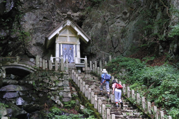 | 今回は下山にこの天狗岩コースを下ってみた。 日陰のない真っ直ぐで急な登山道は「登りには使えないなぁ。」とひとりごと。 |