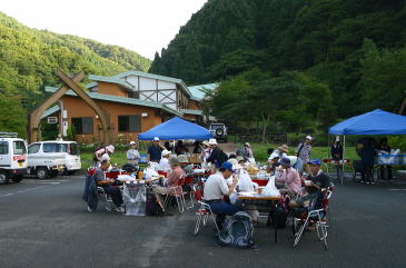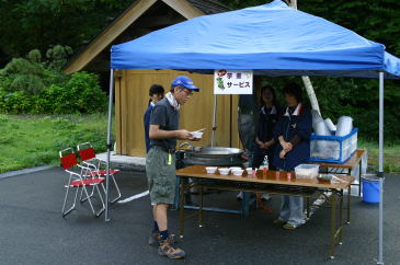 | あじわいの宿で送迎バスを降りるとすでに受付を済ませた人たちが 用意された芋煮に舌鼓を打っていた。 三回目の参加ともなると、見覚えのある方が何人もいらっしゃるものだ。