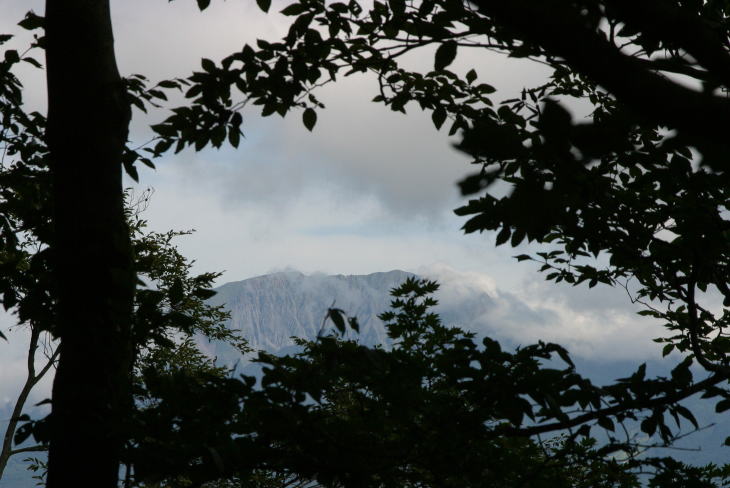残念ながら雲が重くのしかかり全容がはっきりしない。 稜線上にはとても心地よい風が吹き、秋を身近に感じることができた。