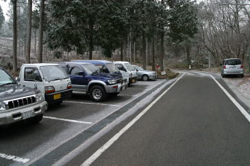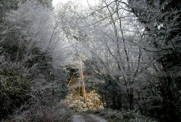 | 今日はC〜Bコースを歩くつもりだ。 | Cコースをしばらく歩くと林道に出合う。 ここで樹氷を見ることができた。とても綺麗だ。 |
