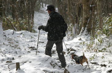 | 大神岩を過ぎたところでビーグル犬を連れた方に出会う。 この犬には見覚えがある。そう昨年6月に泉山で出会った犬だ。 今日も元気に歩いていた。 |