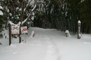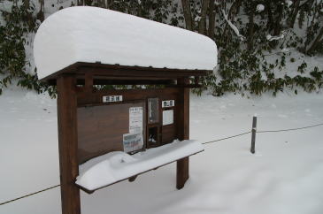 | 「樹氷」と「スノーシュー」、このふたつのキーワードを満たしてくれる山はどこだろうと考えていた。 思い浮かんだのが毛無山(ケナシガセン)だ。 しかし、2〜3日前の後山や那岐山にはほとんど雪がなかったので毛無山も期待できないだろうと思っていた。 国道181号線を北上し、美甘を過ぎて新庄村に入ると景色が一変する。 まるで北国だ。想像以上の積雪に目を疑ってしまった。 しかし、登山口まで除雪されているのでありがたい。 登山口の積雪は50cmはあるだろう。 身支度をしていると地元の方が心配そうに、気をつけて登れよと声をかけてくださった。 |