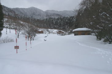 小屋の中には雪が吹き込み、ベンチは凍っていた。 室温氷点下5℃、それでも外よりずっと暖かく感じた。 |