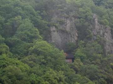 遊歩道からは崖の中腹に建つ和気観音が…。 上の画像にマウスポインタをどうぞ。 |