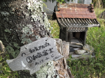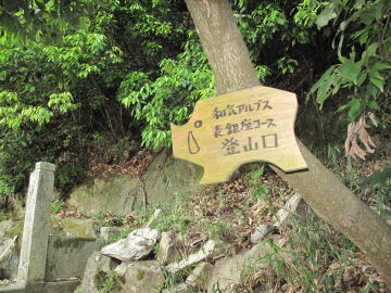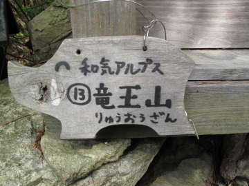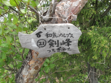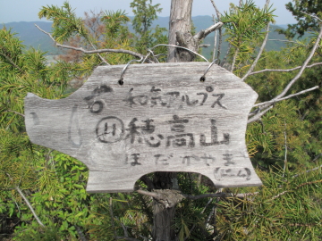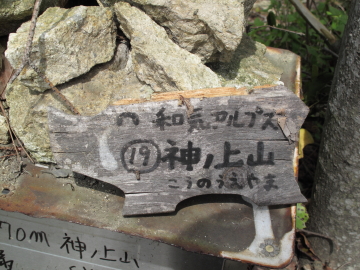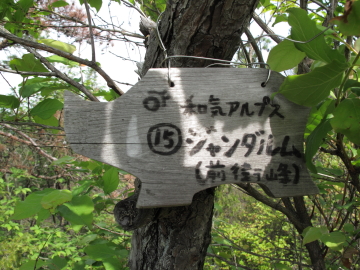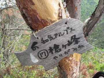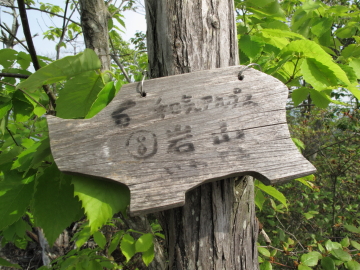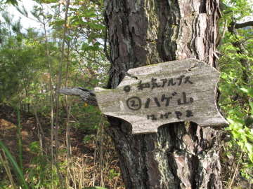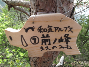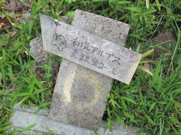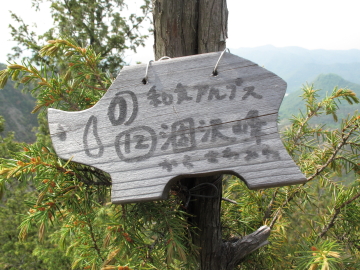 | 日本アルプスを彷彿とさせる山名のプレートを見つけるたびにちょっとうれしくなる。 鵜飼谷北稜ルートの分岐点となる奥ノ峰でイノシシプレートを随分探すも見つけられず。 |