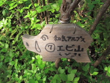 通りすぎてしまいそうになった、見晴らしのきかない エビ山のピーク。 |