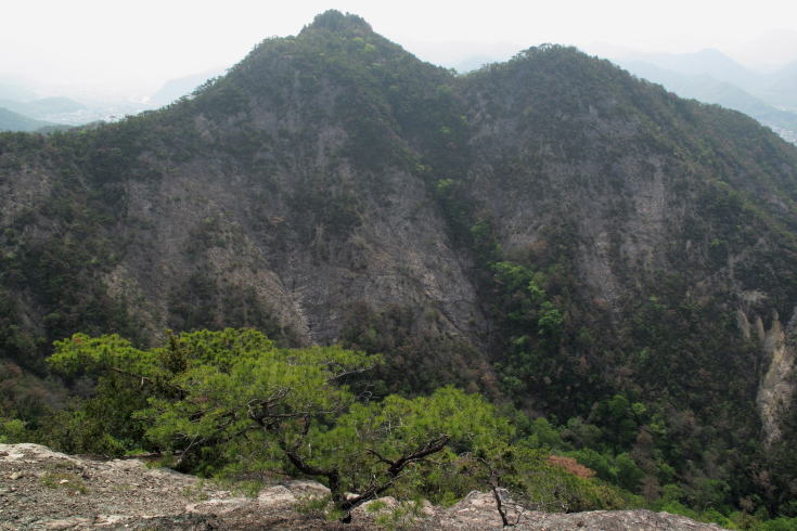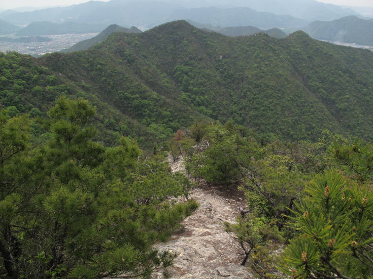 烏帽子岩からこれから進む観音山を望む。 |