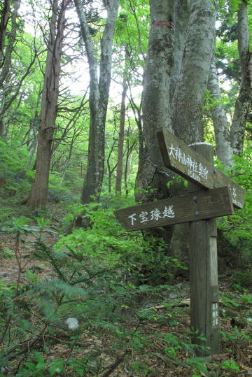 大神山神社奥宮を過ぎ登山道分岐を下宝珠越方面に進む。