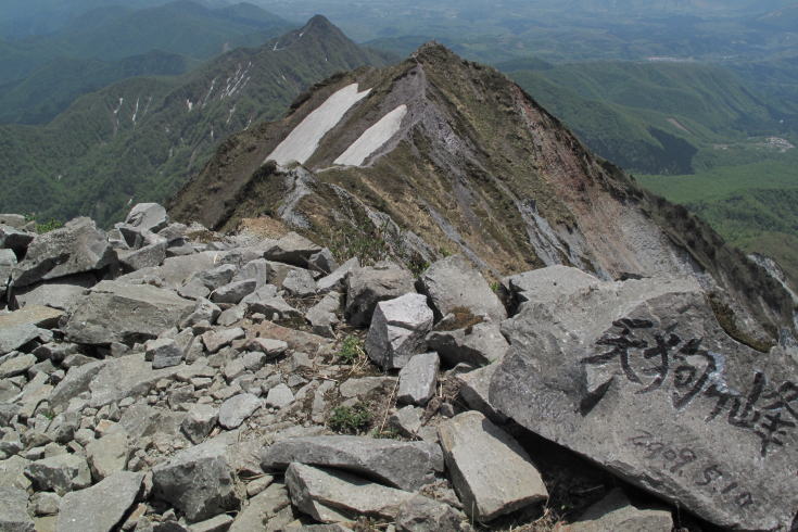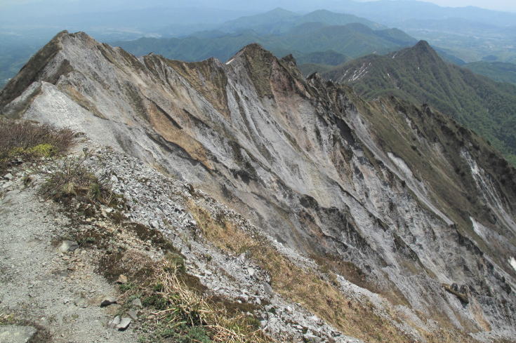 | 天狗ヶ峰から剣ヶ峰に向かう登山者。 | |||||