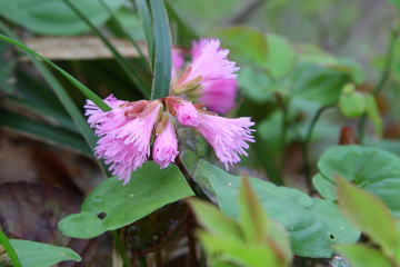 上宝珠越に続く登山道では花期を過ぎた名残のイワカガミが咲いていた。