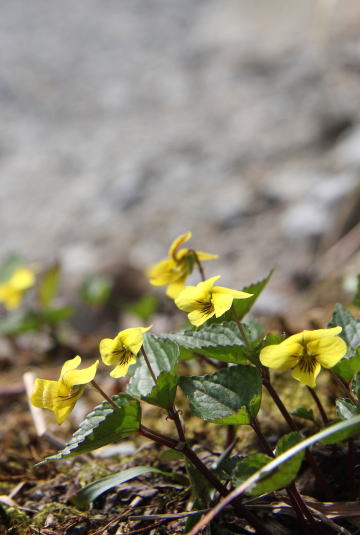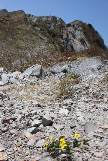 | 厳しい環境の縦走路に咲くダイセンキスミレ。 | |||||