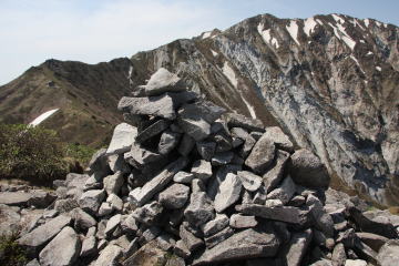 | 三鈷峰山頂 | ケルン越しに北壁を望む。 | ||||