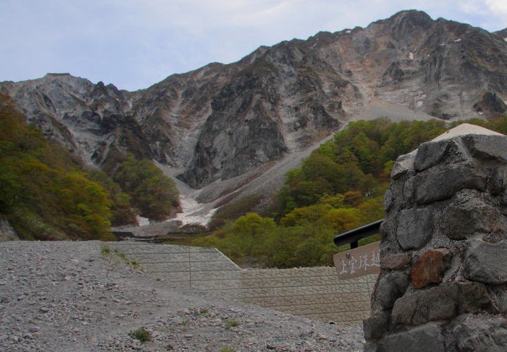 北壁を見上げると時折大きな石が転がり落ちていくのが見える。
