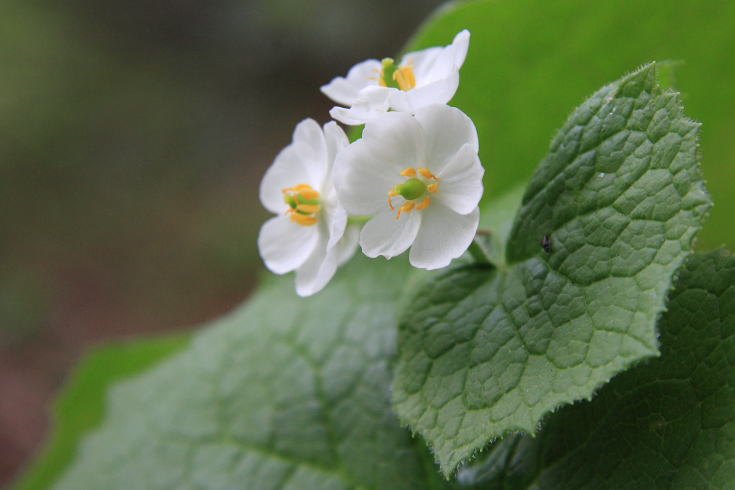 上宝珠越を過ぎて勝間ケルン辺りまで登ると登山道の脇にサンカヨウが咲き始めていた。