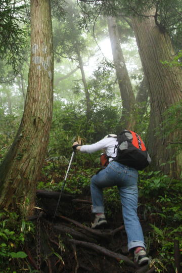 仕方なくガスで見通しの利かない登山道を再び歩き始める。