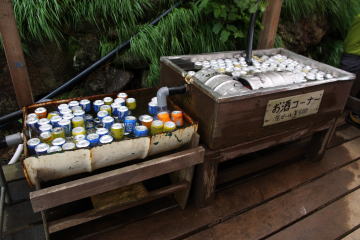ここでも誘惑が待っていた。 今度は看板ではなく冷水に浮かぶ缶ビールそのものだ。 1本500円は高いとは思わなかった。 長い道のりを歩いてきた登山者にとって看板以上に宣伝効果があることを思い知らされた。 乾いた喉から手が出るほど飲みたくなる冷えたビールは、まさに魔性の飲み物だな。 |
