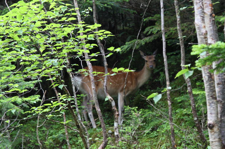 赤岳鉱泉を後にして少し歩くと森の中でシカに遭遇した。 目の前にいるシカにあわててカメラを向けたが前ピンになってしまった。 残念! |