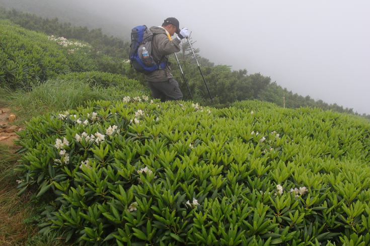 赤岩ノ頭では群生したハクサンシャクナゲが見事だった。 (AM10:43) |