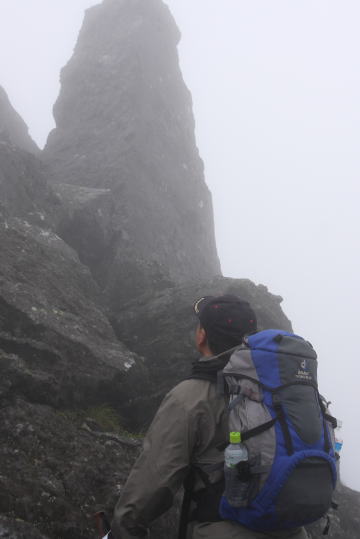 上の画像にマウスポインタをどうぞ。 一瞬だけガスが消え、ロッククライミングで有名な大同心がその姿を現してくれた。 |