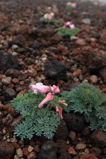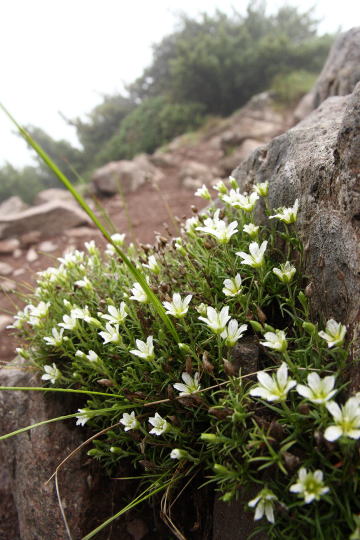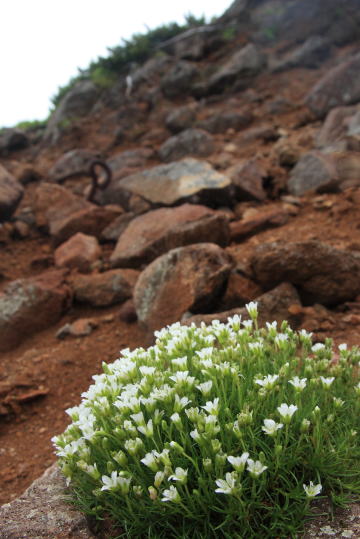 これもタカノツメクサですね。 荒涼とした登山道に咲く白色の花弁がとてもきれいです。 |