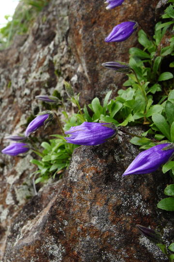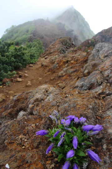 これまた岩場に咲いていたチシマギキョウ。 鮮やかな紫の花が印象的でした。 |