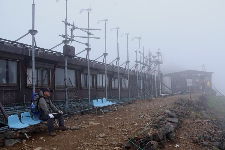 赤岳展望荘に到着 (PM15:12) 晴れていればすばらしい展望なんだろうな。 |