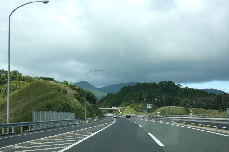 米子自動車道 天気予報は「晴れ」なのに空模様を見ると今にも降り出しそうな天気だった。 |
