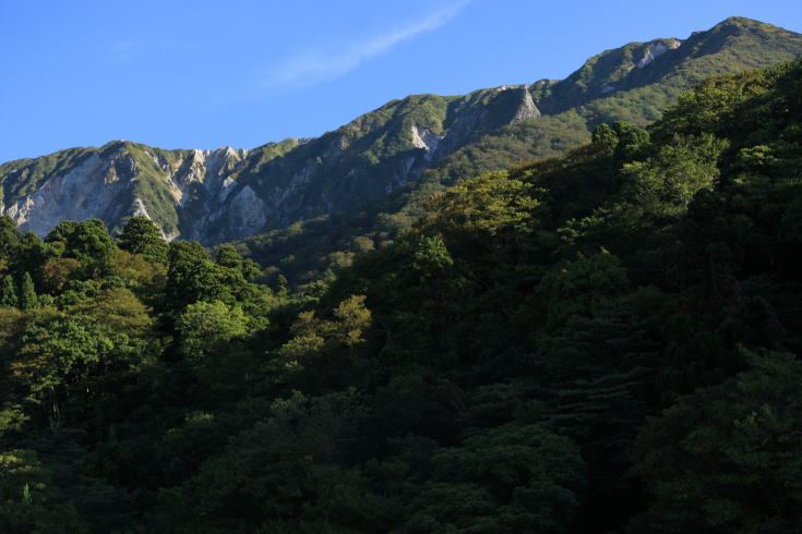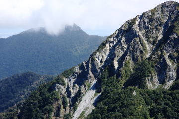 大山北壁を見上げると青空が広がりはじめていた。 |